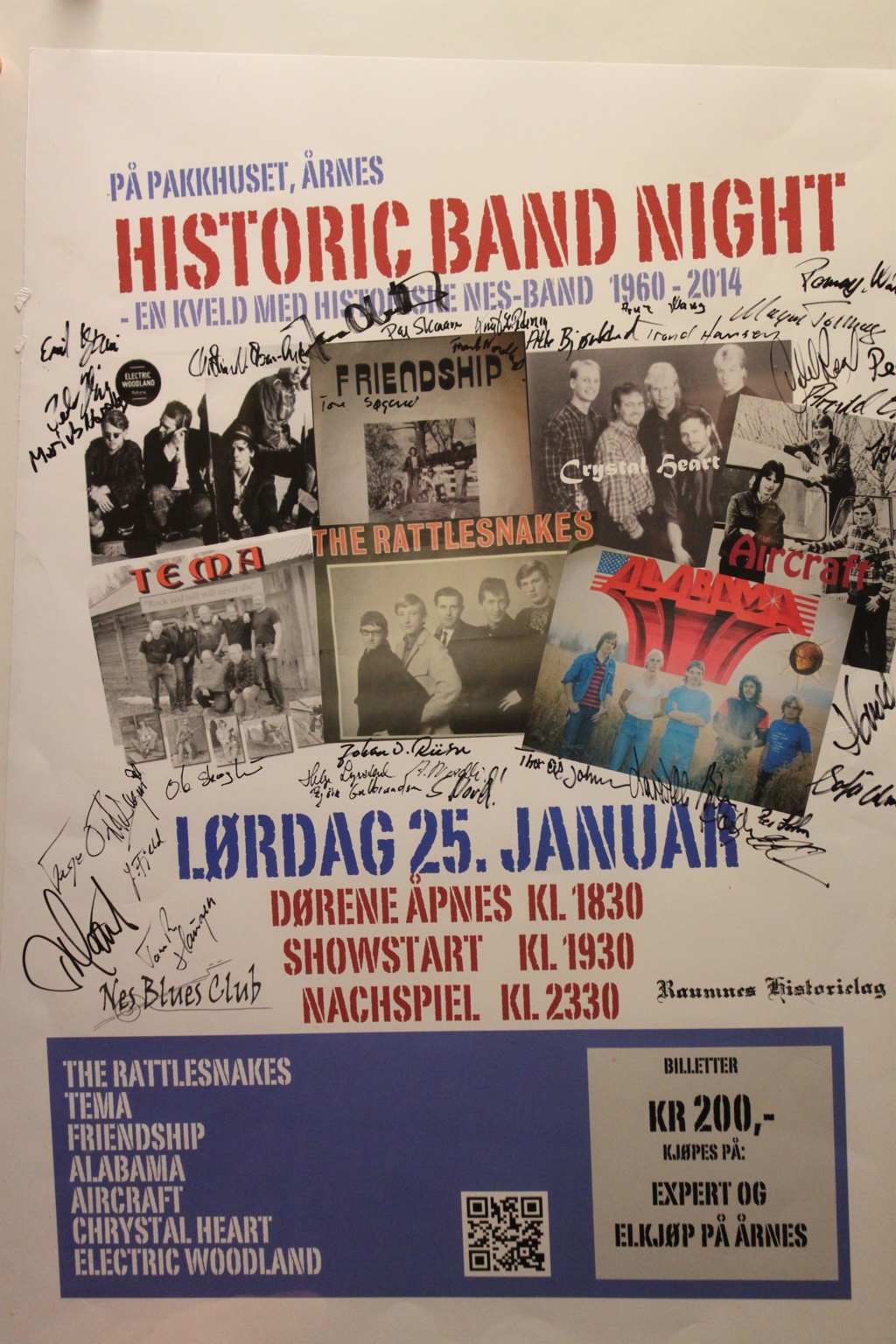 Første band på scenen var The Rattlesnakes fra Fenstad. Arvid Nordli på gitar, Svein Nordli på gitar, Helge Lyrstad på trommer, Johan Oskar Riiser på keyboard og Bjørn Guldbrandsen på bass. Bandet startet i 1962. I originalbandet var også Bjørn Nordli og Oddbjørn Hansen med. Som Rattlesnakes hadde de ikke spilt sammen siden 1968.